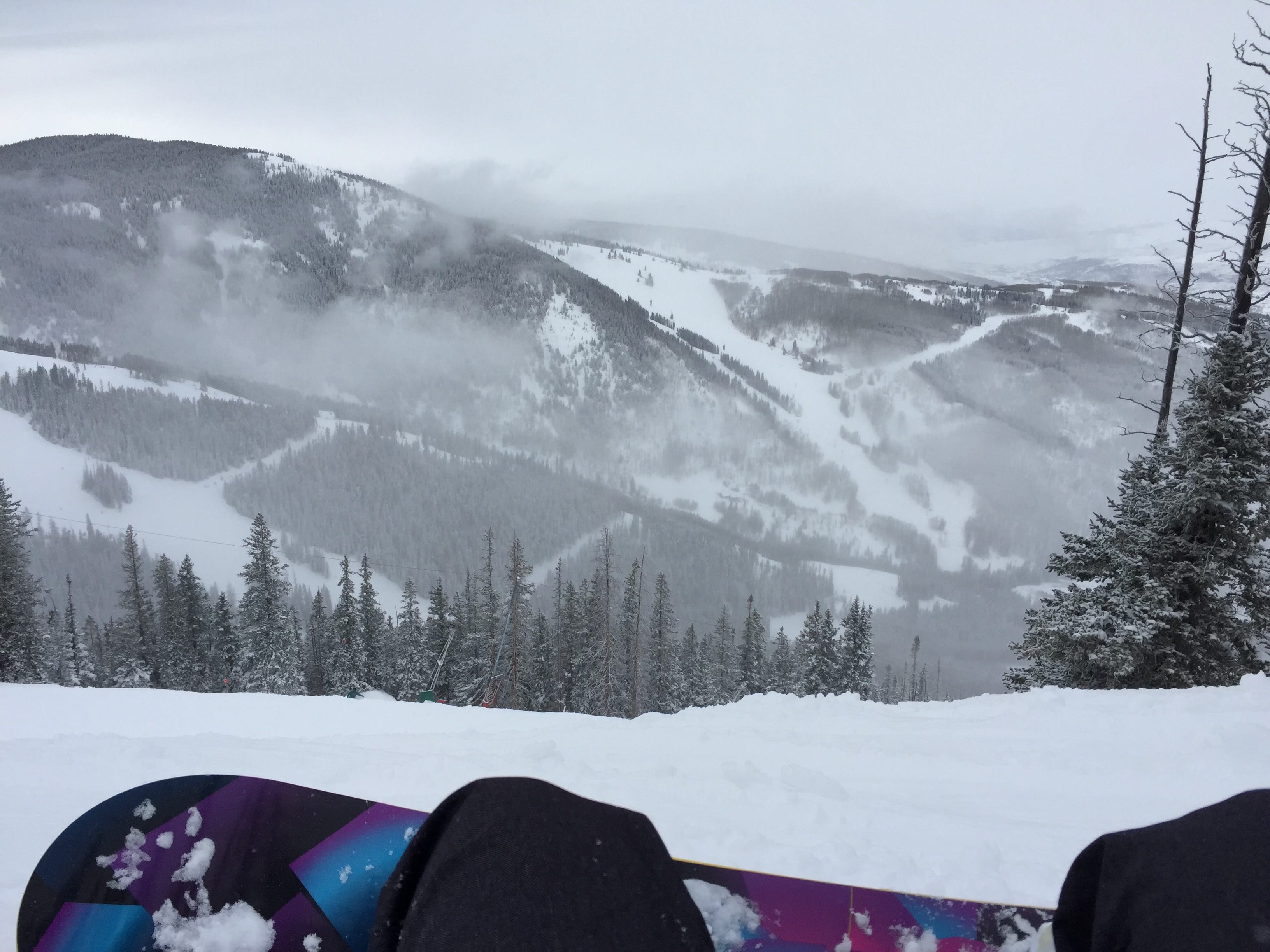 No queue to clear. No signal to monitor. Just pine trees and grey-white sky and a valley so vast it makes everything I’ve ever stared at on a screen feel appropriately small.